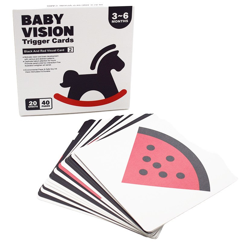 High-contrast black and red images are riveting to your baby at this stage. As your baby's vision develops, they'll become interested in more complex patterns.